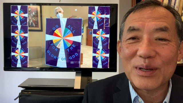 So, what is a Stewardship Pledge? To start with, Stewardship is our caretaking, our custodianship, our trusteeship of all that God has given us – time, talent, and treasure. In our church we are all invited to make an annual pledge, indicating how we plan to share our stewardship in the life of the church. So we pledge money, and time, and talent. Julie Fukuda’s stewardship has included creating a beautiful banner for our theme: “Do it all for the glory of God” from 1 Corinthians 10:31.