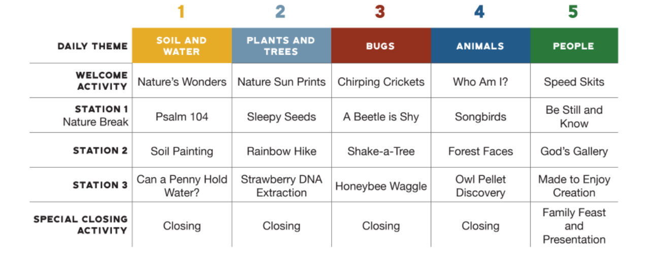 This curriculum dives deep into this scripture each day, exploring how its truths are evident in all of God’s creation. Lessons point to the overarching theme of wonder for all of the good gifts of creation that God has freely given. The lessons provided not only spark curiosity but also move campers beyond wonder to gratitude and praise to the Father.